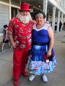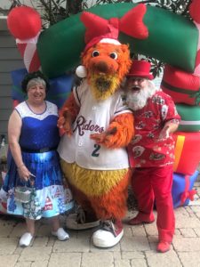Stocking Stuffer Steve, Deuce, and Mrs. Claus kicked off Christmas in July for the Frisco Roughriders Baseball game at Dr. Pepper Ballpark on July 16, 2021. Throwing out the first pitch proved that Stocking Stuffer Steve is a better toymaker than a pitcher!